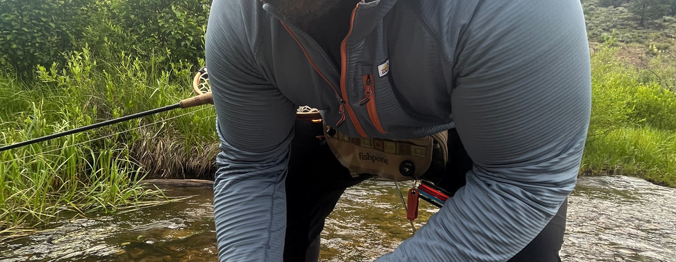 The next day, we hit the water and visited one of my favorite stores. We fished momentarily at Clear Creek Reservoir near Leadville, CO. We didn't fish long as I was excited to visit Melanzana to get Ross his long-awaited Mellie. I have had my Mellie since August 2019 and it has some history to it now. In case you haven't heard of Melanzana, Melanzana is a store that hand crafts microgrid material clothes in Leadville, CO. You have to have an appointment to shop in the store and they do not do any online orders. You have to be IN Leadville to get any of their merchandise. I randomly got the appointment to shop the night before we went. I am still so stoked that I was able to get Ross the Melanzana he had wanted since 2019.